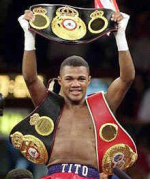Félix 'Tito' Trinidad, Jr. is a retired Puerto Rican professional boxer, considered as one of the best boxers in that country's history. When he was an amateur Trinidad won five National Amateur Championships in Puerto Rico. He debuted as a professional when he was 17 years old and won the first world championship in his career when he defeated Maurice Blocker for the International Boxing Federation's welterweight championship. During his career he fought Oscar De La Hoya winning the World Boxing Council's welterweight championship, Fernando Vargas in a unification fight where he won the International Boxing Federation's light middleweight title, and William Joppy for the World Boxing Association's middleweight championship. ~ Wikipedia. |