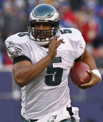 Donovan McNabb is an American football quarterback for the Washington Redskins of the NFL. He was the Philadelphia Eagles' quarterback from 1999 to 2009. McNabb led the Eagles to four consecutive NFC East division championships (2001, 2002, 2003, and 2004), five NFC Championship Games (2001, 2002, 2003, 2004, and 2008), and one Super Bowl (Super Bowl XXXIX, in which the Eagles were defeated by the New England Patriots). He is the Eagles' all-time leader in career wins, pass attempts, pass completions, passing yards, and passing touchdowns ~ Wikipedia. |
